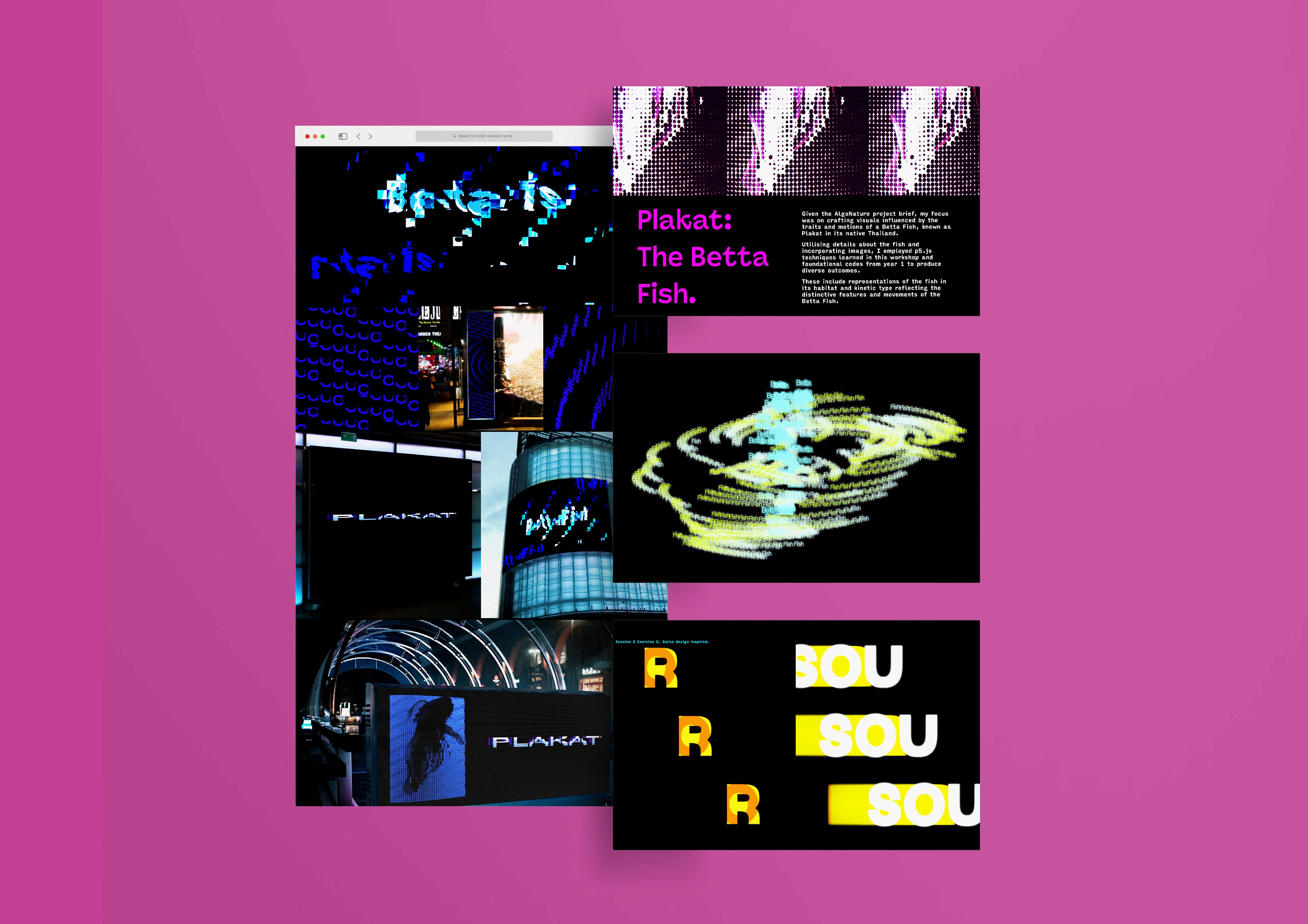 Through a series of exercises exploring the generative, dynamic and playful potential of type, I have created a series of digital outputs through code presented in this online showcase.